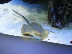 Unseren Rochen pflegen wir seit 2,5 Jahren. Die ersten 3 Wochen hatten wir Schwierigkeiten, dass er ans Futter ging. Jetzt frisst er aus der Hand und holt sich sogar Streicheleinheiten am Bauch. Das gefällt ihm so gut, dass er seine Aussenseiten nach oben klappt und still hält.