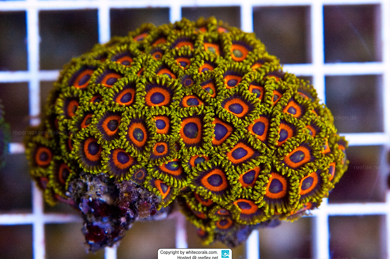 Apart from their colour and polyp size most Zoanthus species look very much alike, so they can hardly be identified exactly by mere physical appearance. Marine aquarists and coral traders have assigned telling names to the large variety of Zoanthus species referring to the special colouration morphology of the polyps to identify a particular specimen. Firstly, these fancy variety names are commonly used in the stocking lists of importers and coral shops, secondly, the majority of saltwater hobbyists are more familiar with them and thirdly, the reeflex entries will be easier to find via search engines. So that is why we have decided to list the different varieties of Zoanthid species under their common fancy names on reeflex.