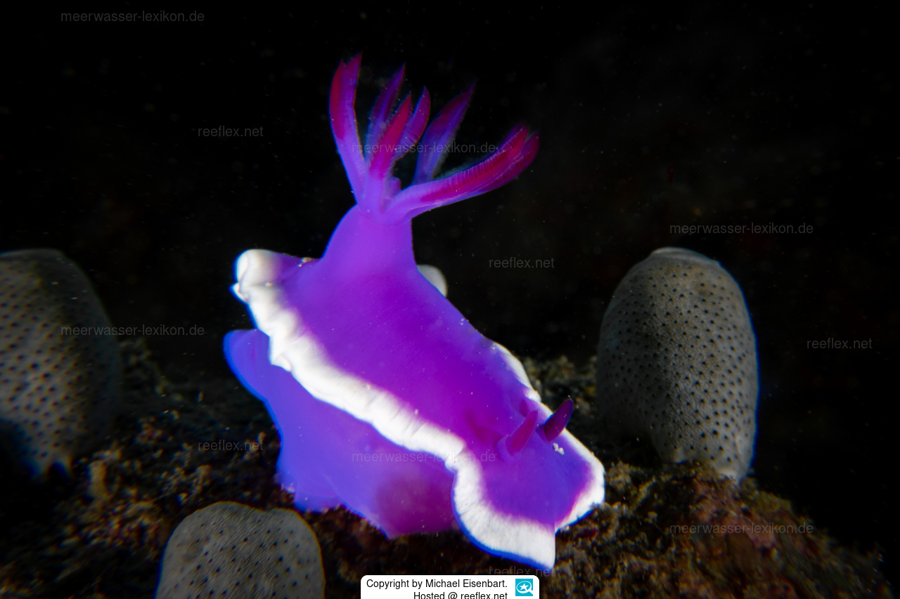 Hypselodoris violacea is commonly referred to as Violet-purple Dorid Nudibranchs. Difficulty in the aquarium: Not suitable for aquarium keeping. Toxicity: Toxic hazard unknown.