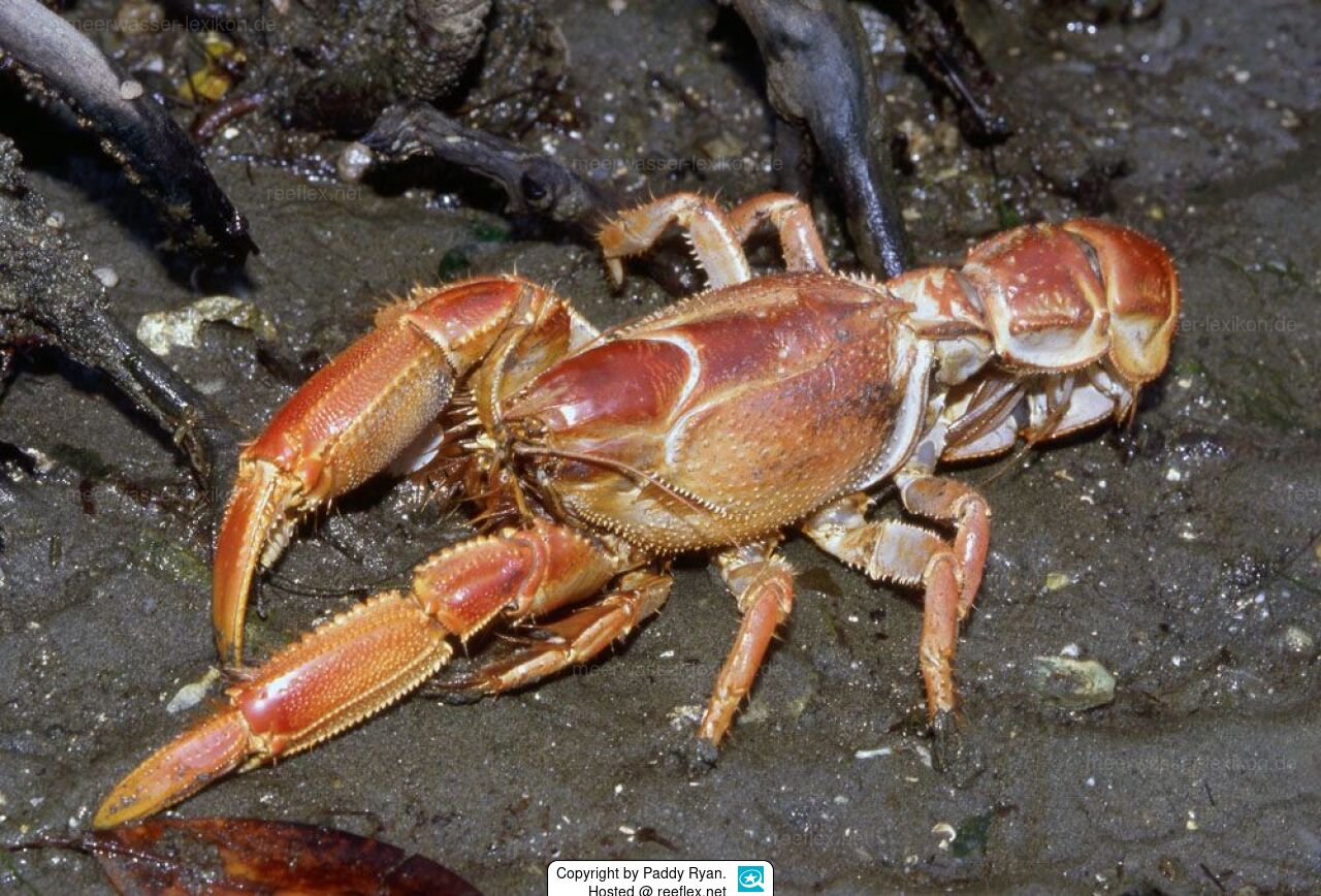 Thalassina lives in burrows up to 1,50 m and forms volcano-like mounds.This mud lobster feeds on organic matter in the mud.